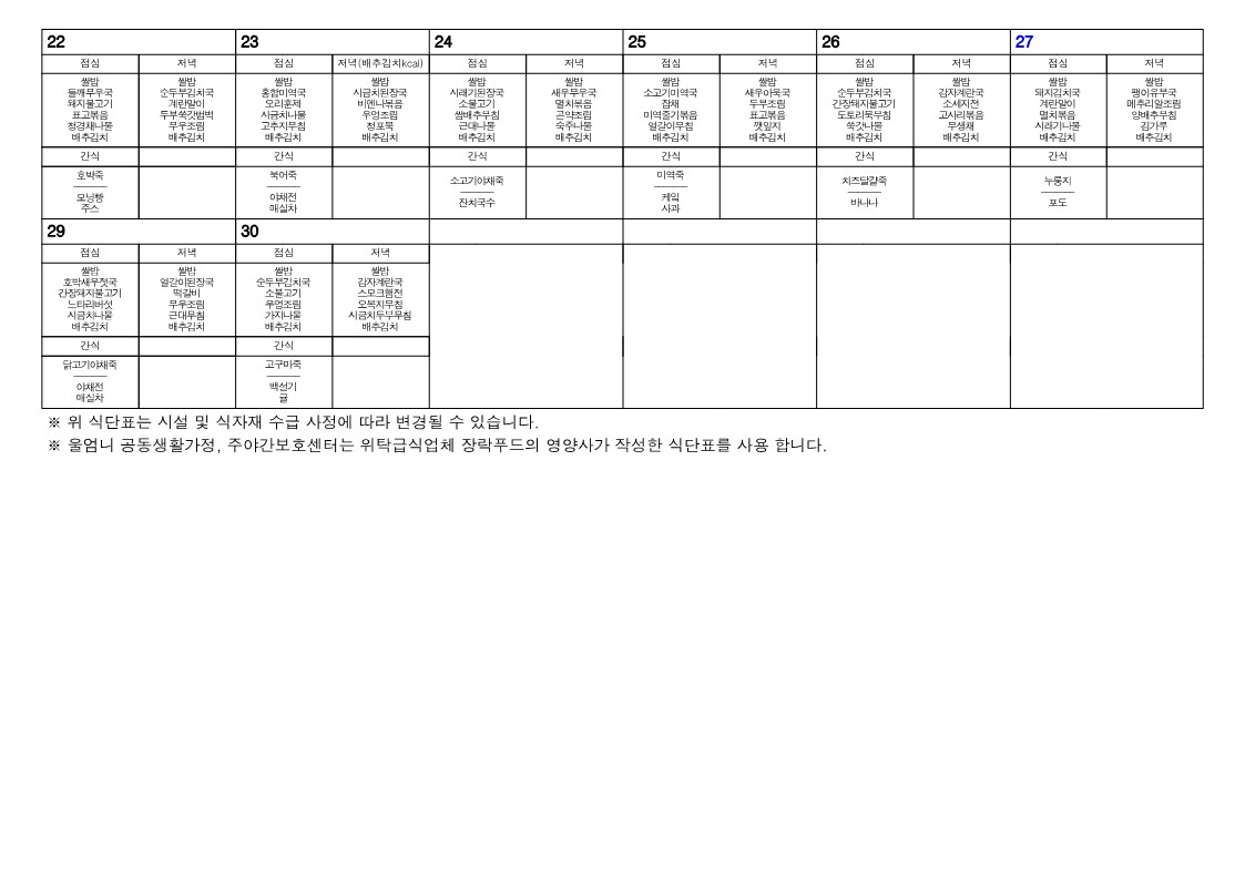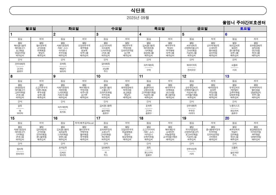어르신들의 미소가 활짝 피어나는 프리미엄 돌봄! "울엄니, 울아부지를 섬기는 마음으로 어르신을 모셔유~" 저희 울엄니는 이 따뜻한 마음을 품고 어르신들의 일상에 환한 웃음꽃을 피워드리는 프리미엄 돌봄 서비스를 제공합니다! 어르신의 하루를 빛내는 명품 식단! 울엄니주야간보호센터의 식단은 그저 밥 이 아니에요. 어르신들의 활기찬 하루와 건강을 위한 저희의 특별한 선물이죠! 영양은 물론, 소화까지 편안하게 생각하며 정성껏 준비한 명품 식단으로 매일매일 맛있는 즐거움을 선사합니다. 특히, 오전 간식은 어르신들께 전혀 부담을 주지 않으면서도 속을 든든하게 채워주는 최고급 죽으로 준비하고 있어요. 어르신들의 빛나는 미소를 위한 울엄니의 품격 있는 돌봄 서비스에 대해 더 궁금한 점이 있으시다면, 언제든지 편안하게 문의해주세요! 042-582-8382 또는 010-5252-8393 어르신들의 행복한 매일을 울엄니가 함께 만들어가겠습니다!