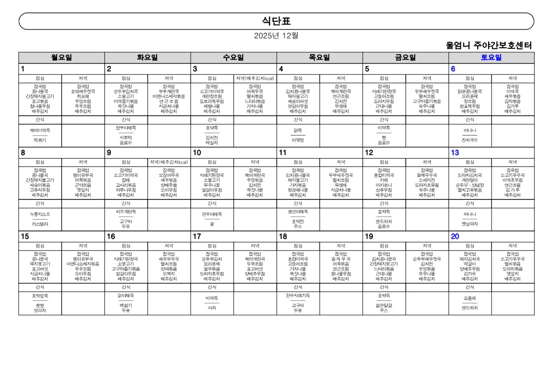 울엄니만의 노하우가 빚어낸 어르신 맞춤형 건강 식단 울엄니는 기본에 충실합니다. 사랑하는 우리 부모님을 위한 주야간보호센터를 선택하실 때, 식단은 결코 놓칠 수 없는 중요한 부분입니다. 같은 주간보호센터라 할지라도 노하우는 무시 못한다 는 말이 있듯이, 울엄니 주야간보호센터는 30년 넘게 쌓아온 특별한 식단 철학으로 어르신들의 건강한 하루를 책임집니다. 울엄니는 과거 어린이집을 20여 년간 운영하며 아이들에게 먹는 것에 진심 이었습니다. 성장기 아이들에게 균형 잡힌 영양 공급이 얼마나 중요한지 누구보다 잘 알았기에, 매일 정성껏 식단을 고민하고 준비했습니다. 그리고 그 소중한 경험과 깊이 있는 노하우는 이제 어르신들을 위한 밥상으로 이어지고 있습니다. 어르신들은 특히나 드시는 것을 잘 드셔야 한다 는 울엄니의 확고한 신념은 지금도 변함이 없습니다. 울엄니 주야간보호센터에서는 어르신 한 분 한 분의 건강 상태와 기호를 세심하게 고려하여, 고른 영양 균형 설정을 위해 늘 고민하고 연구합니다. 단순히 배를 채우는 것을 넘어, 어르신들의 활력과 면역력 증진에 기여할 수 있는 맞춤형 식단을 제공하고자 최선을 다하고 있습니다. 매일 신선하고 좋은 재료로 정성껏 준비되는 울엄니의 밥상은 어르신들의 잃었던 입맛을 되찾아 드리고, 즐거운 식사 시간을 통해 삶의 활력을 불어넣어 드릴 것입니다. 우리 엄마, 아빠가 울엄니 주야간보호센터를 이용하신다면, 어르신께서 드시는 것에 대한 걱정은 이제 완전히 덜어내셔도 좋습니다. 울엄니 주야간보호센터는 어르신들이 매일 행복하고 건강한 식사를 통해 편안하고 활기찬 하루를 보내실 수 있도록 늘 최선을 다하겠습니다. 어르신들의 빛나는 미소를 위한 울엄니의 품격 있는 돌봄 서비스에 대해 더 궁금한 점이 있으시다면, 언제든지 편안하게 문의해주세요! 042-582-8382 또는 010-5252-8393 어르신들의 행복한 매일을 울엄니가 함께 만들어가겠습니다!
